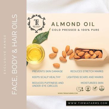 Tirwa Raasa's Cold-Pressed Almond Oil is a pure and nourishing elixir for your skin and hair. Extracted using a gentle cold-pressing method, it retains the natural goodness of almonds, providing you with a luxurious and versatile oil that hydrates, rejuvenates, and enhances your beauty naturally. Elevate your self-care routine with the r
