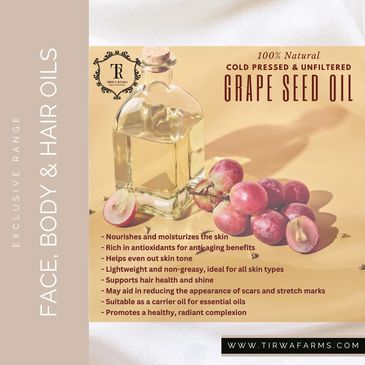 Unveil the secrets of pure wellness with Tirwa Raasa's Grapeseed Oil - your go-to elixir for all things nourishing and beautiful.
