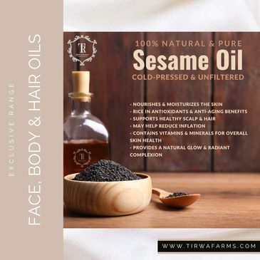 Tirwa Raasa's Cold Pressed Sesame Oil: Nature's Nutrient-Rich Elixir. Our premium, unrefined sesame oil is meticulously crafted using the cold-press method, preserving the essence of sesame seeds for a pure, flavorful, and healthful addition to your culinary creations. Elevate your dishes with the rich, aromatic goodness of Tirwa Raasa's Sesame Oil, the secret to authentic flavor and well-being.