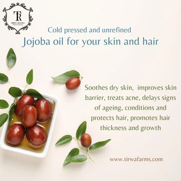 Tirwa Raasa's Cold-Pressed Jojoba Oil is a pure and natural elixir, meticulously extracted from the seeds of the jojoba plant. Our oil is a premium beauty and skincare solution, revered for its hydrating, rejuvenating, and nourishing properties. Unleash the power of nature for radiant skin and lustrous hair with Tirwa Raasa's Jojoba Oil.